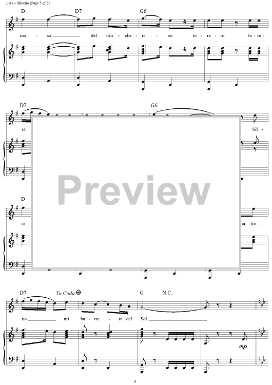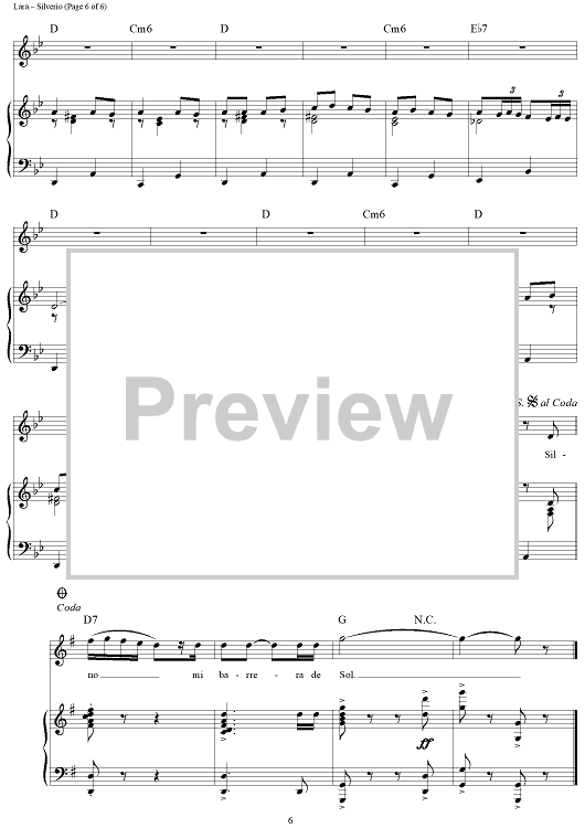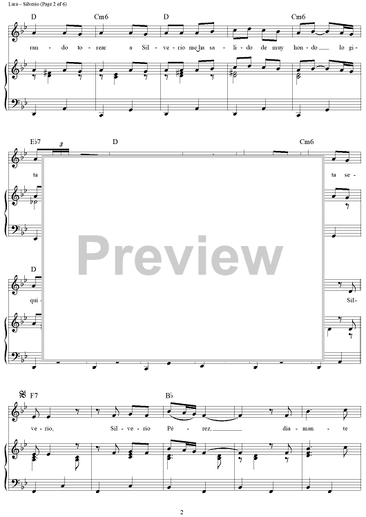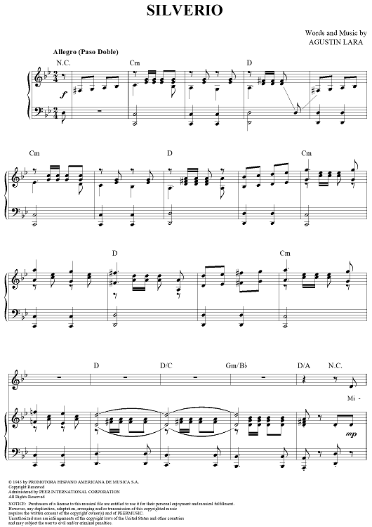 Digital Sheet Music for Silverio by Agustin Lara scored for Piano/Vocal/Chords; id:311062