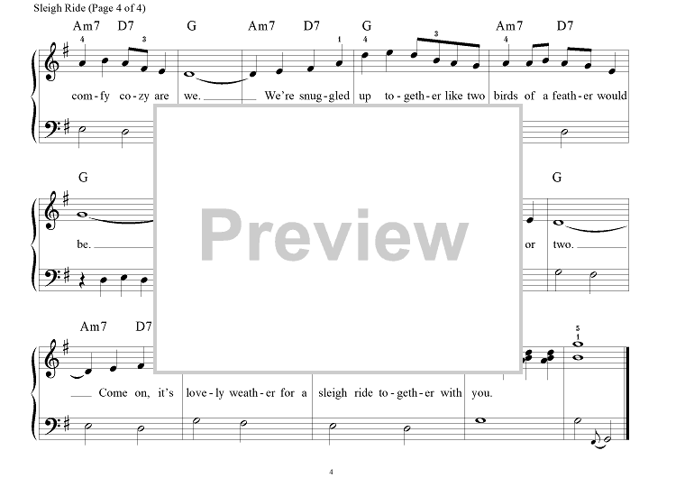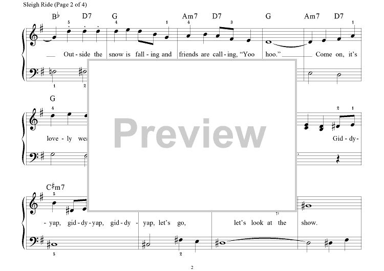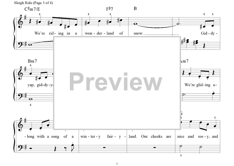 Digital Sheet Music for Sleigh Ride by Mitchell Parish, Richard Bradley, Leroy Anderson scored for Big Note Piano; id:308168
