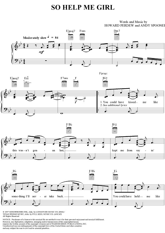 Digital Sheet Music for So Help Me Girl by Howard Perdew, Andy Spooner, Gary Barlow scored for Piano/Vocal/Chords; id:112714