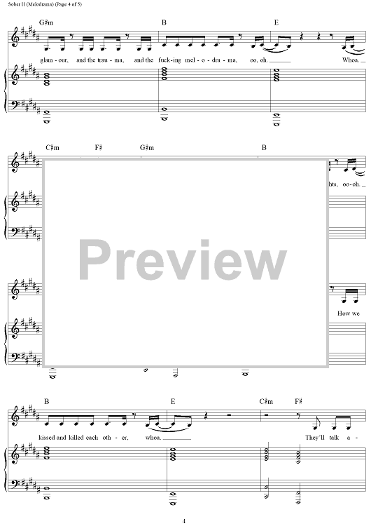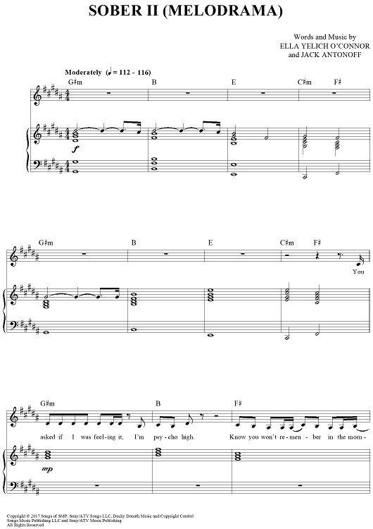 Digital Sheet Music for Sober II (Melodrama) by Jack Antonoff, Lorde, Ella Yelich-O'Connor scored for Piano/Vocal/Chords; id:465296