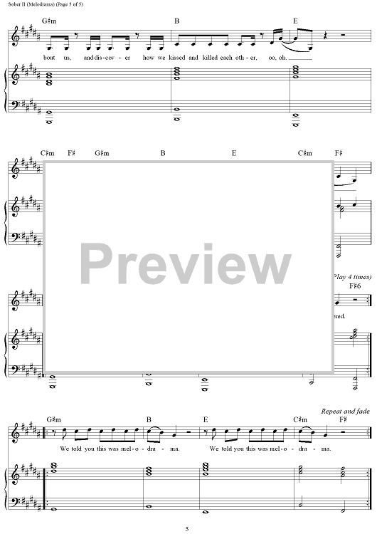 "Sober II (Melodrama)" Sheet Music by Lorde