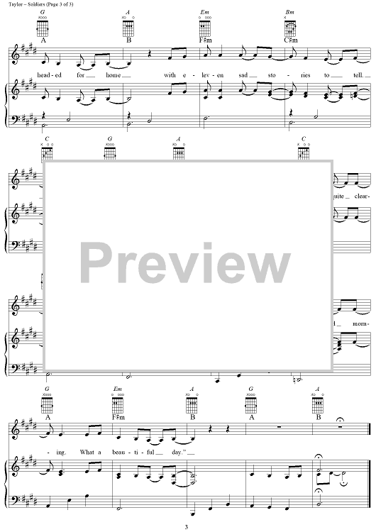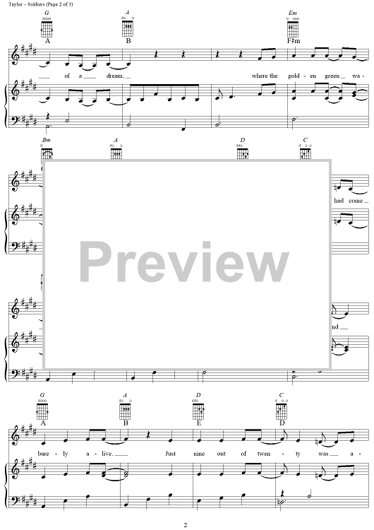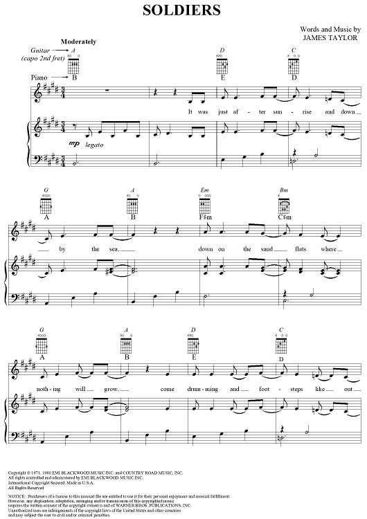 Digital Sheet Music for Soldiers by James Taylor scored for Piano/Vocal/Chords; id:318642