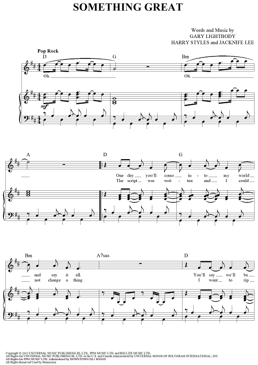 Digital Sheet Music for Something Great by Gary Lightbody, One Direction, Harry Styles, Jacknife Lee scored for Piano/Vocal/Chords; id:445333