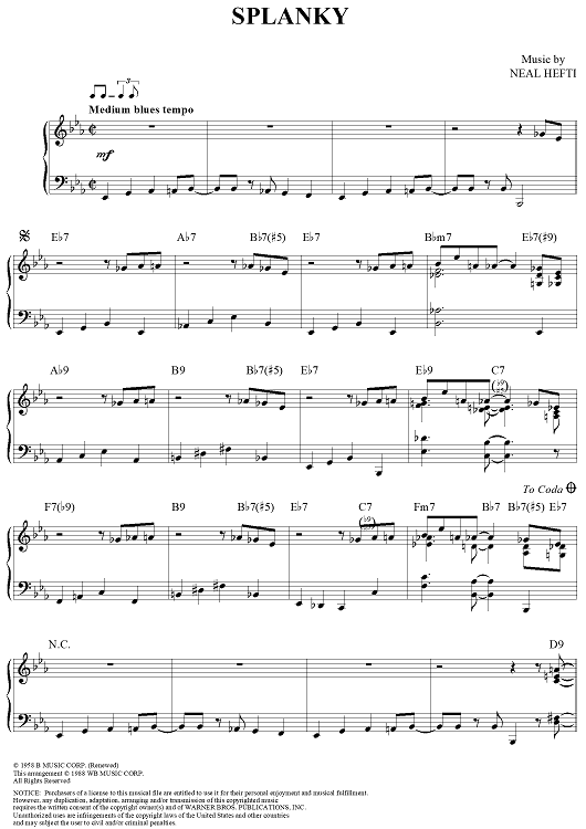 Digital Sheet Music for Splanky by Count Basie, Neal Hefti scored for Piano Solo; id:308318