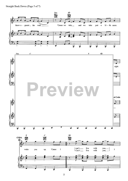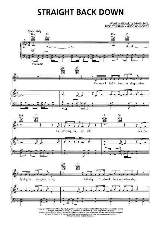 Digital Sheet Music for Straight Back Down by Dean Lewis, Nick Atkinson, Edd Holloway scored for Piano/Vocal/Chords; id:467858
