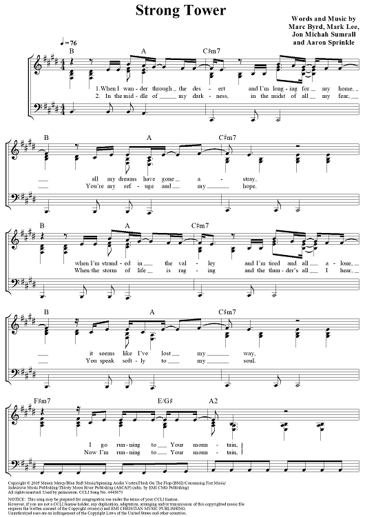 Digital Sheet Music for Strong Tower by Mark David Lee, Marc Byrd, Jon Micah Sumrall, Wild Boar, Kutless scored for Piano/Vocal/Chords; id:356021