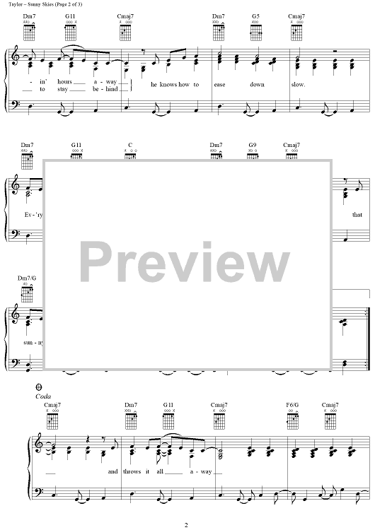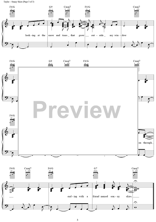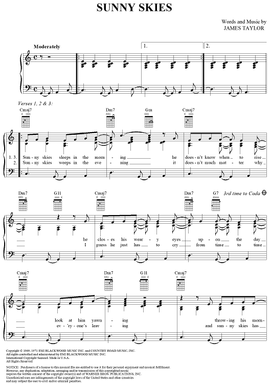 Digital Sheet Music for Sunny Skies by James Taylor scored for Piano/Vocal/Chords; id:318756