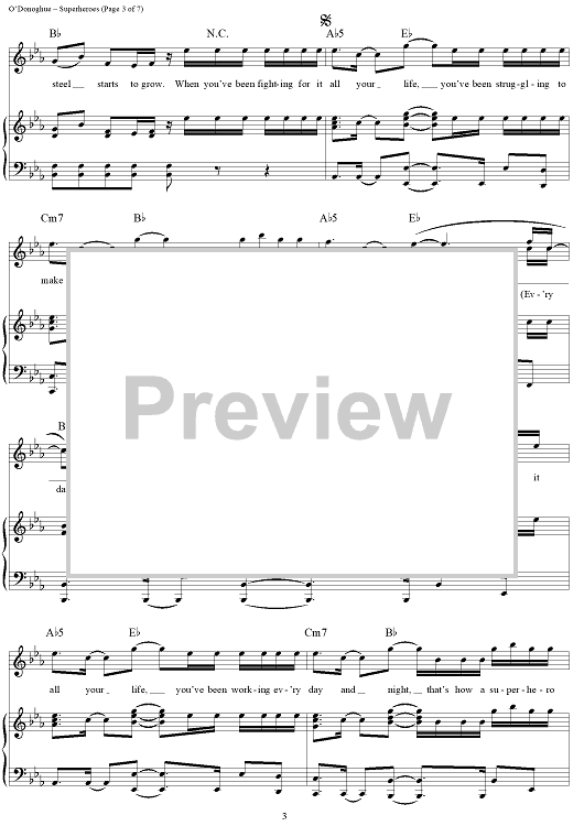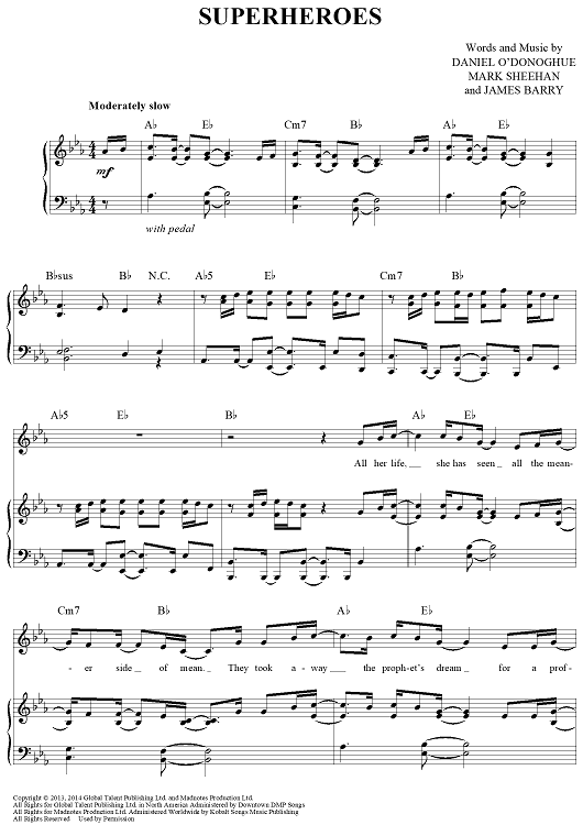 Digital Sheet Music for Superheroes by The Script, Mark Sheehan, Daniel O'Donoghue, James Barry scored for Piano/Vocal/Chords; id:448714