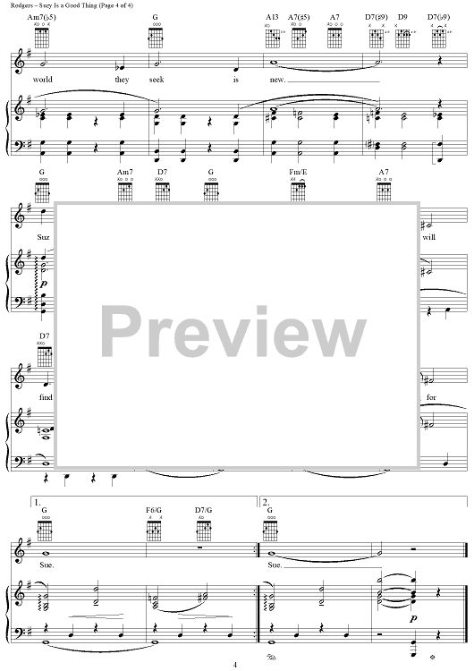 Digital Sheet Music for Suzy Is a Good Thing by Richard Rodgers, Oscar Hammerstein II scored for Piano/Vocal/Chords; id:367099