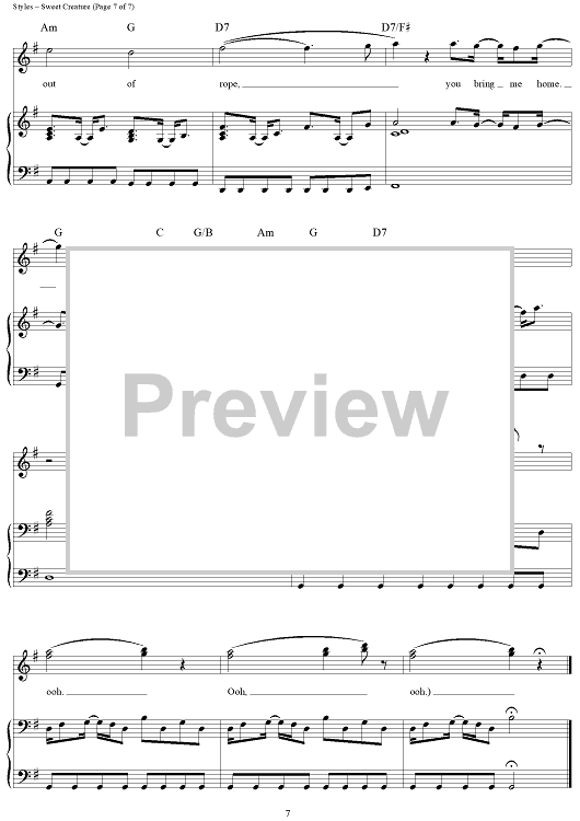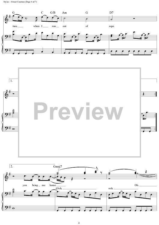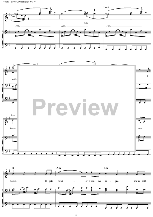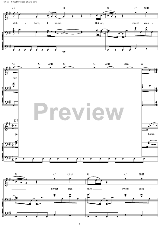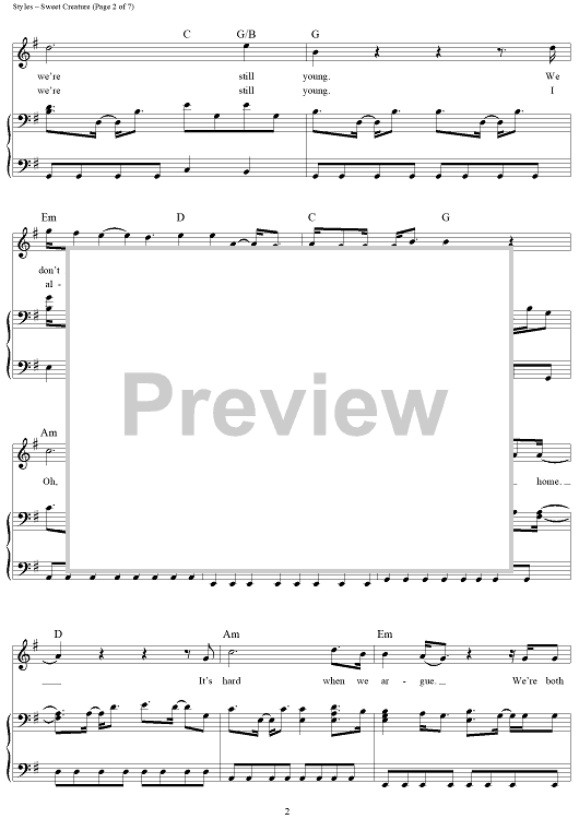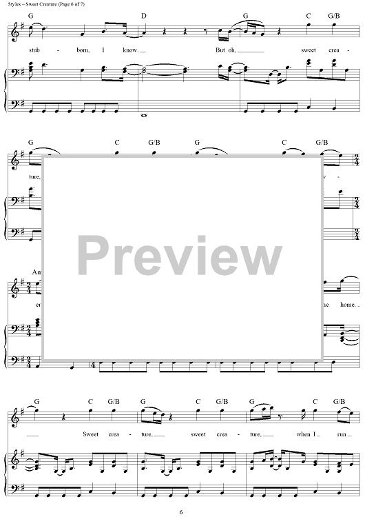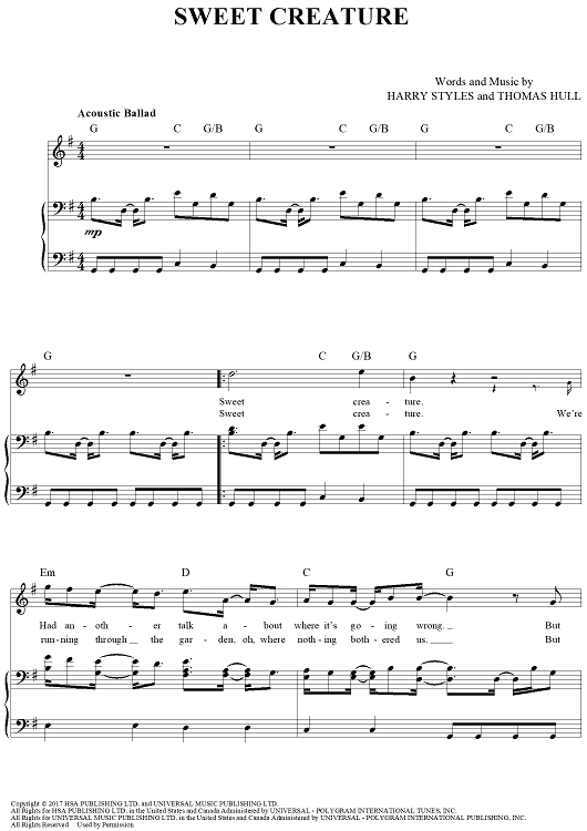 Digital Sheet Music for Sweet Creature by Harry Styles, Thomas Hull scored for Piano/Vocal/Chords; id:464742