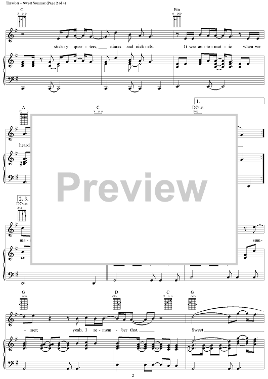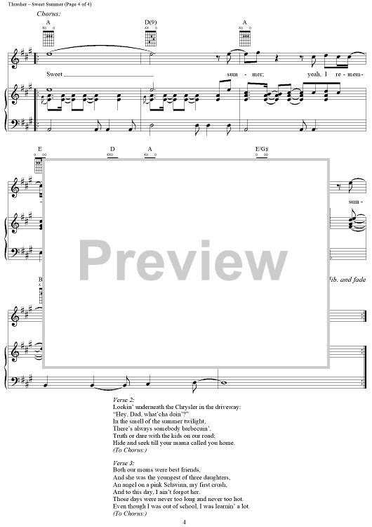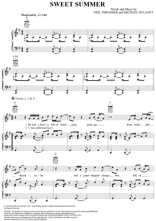 Digital Sheet Music for Sweet Summer by Michael Dulaney, Neil Thrasher, Diamond Rio scored for Piano/Vocal/Chords; id:285421