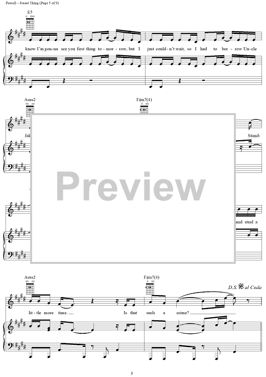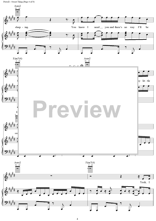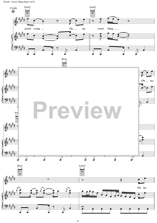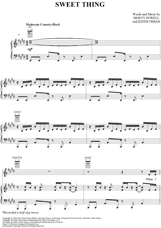 Digital Sheet Music for Sweet Thing by Keith Urban scored for Piano/Vocal/Chords; id:409723