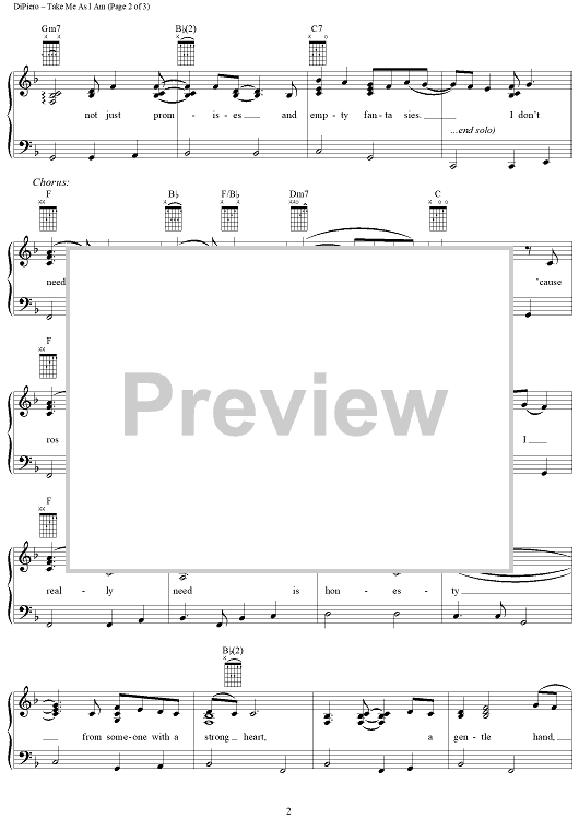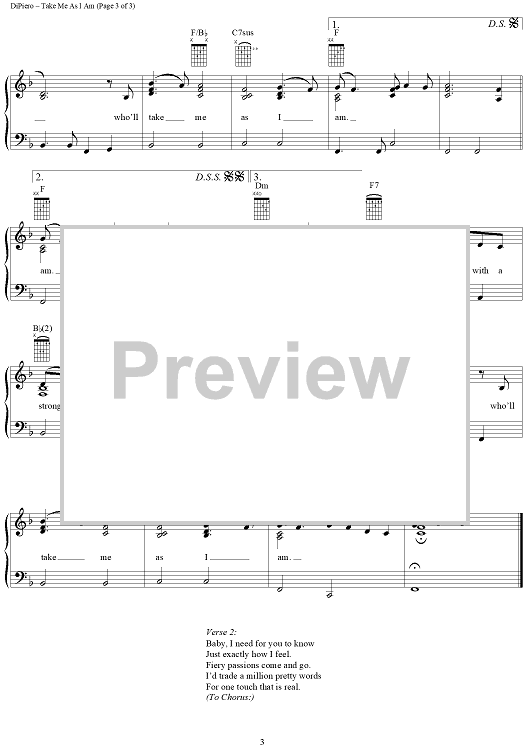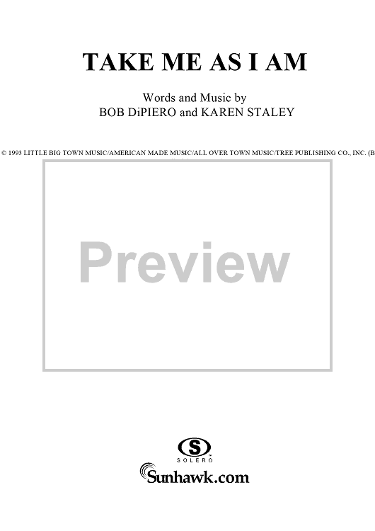 Digital Sheet Music for Take Me As I Am by Faith Hill, Bob DiPiero, Karen Staley scored for Piano/Vocal/Chords; id:115906