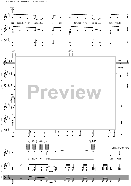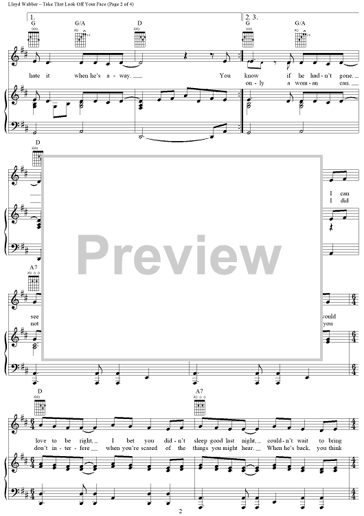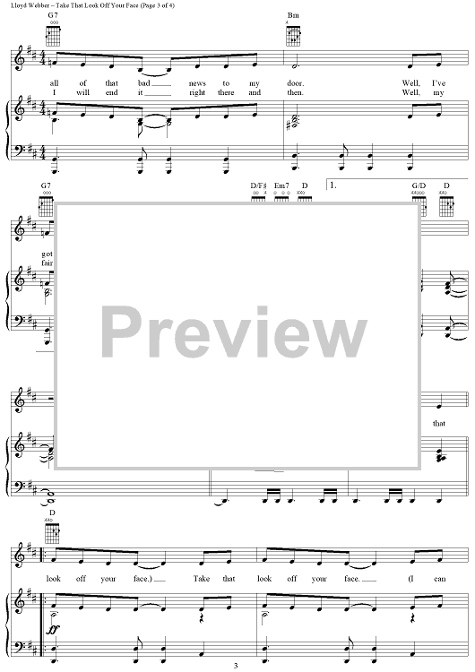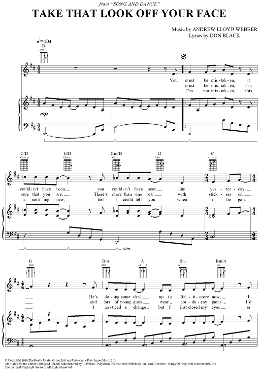 Digital Sheet Music for Take That Look Off Your Face by Don Black, Andrew Lloyd Webber, Bernadette Peters scored for Piano/Vocal/Chords; id:402936