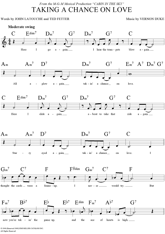 Digital Sheet Music for Taking a Chance on Love by Vernon Duke, John La Touche, Ted Fetter scored for Lead Sheet; id:110171