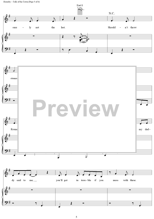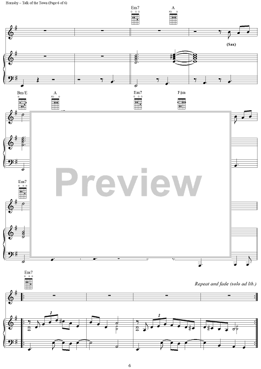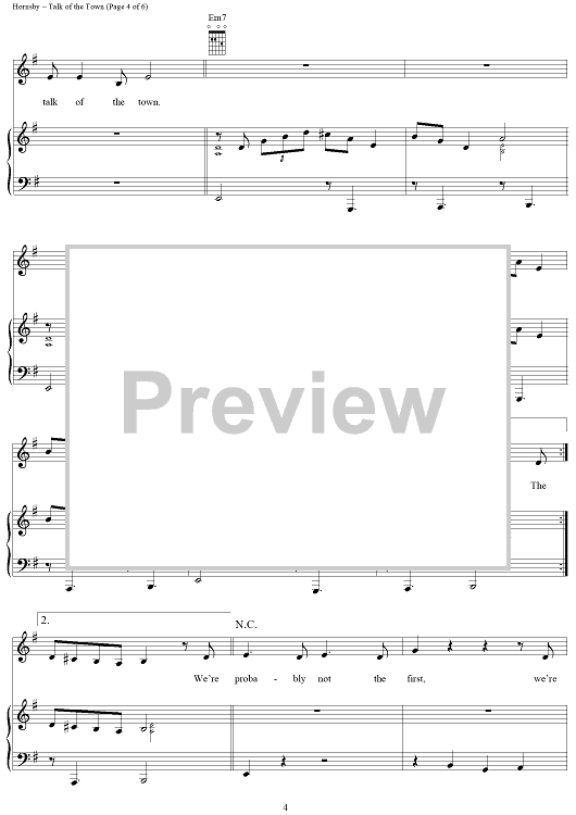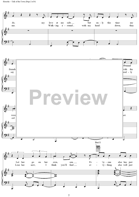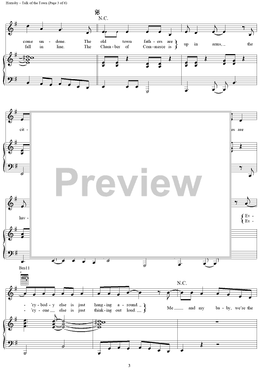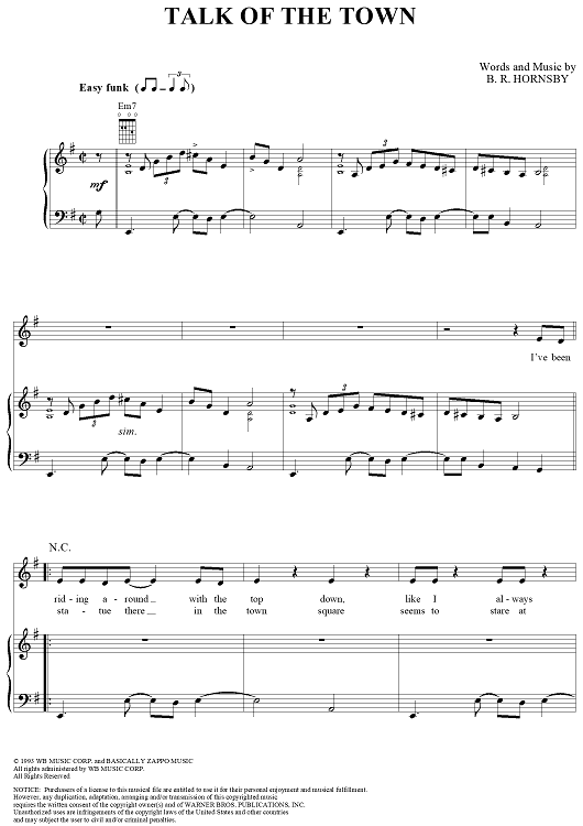 Digital Sheet Music for Talk of the Town by Bruce Hornsby scored for Piano/Vocal/Chords; id:220657