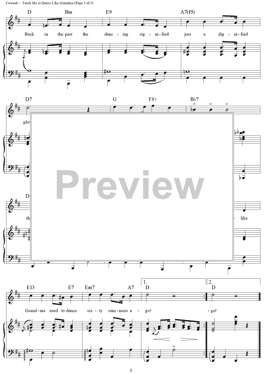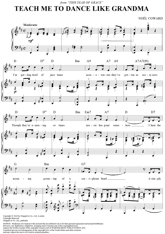 Digital Sheet Music for Teach Me to Dance Like Grandma by Noel Coward scored for Piano/Vocal/Chords; id:357036