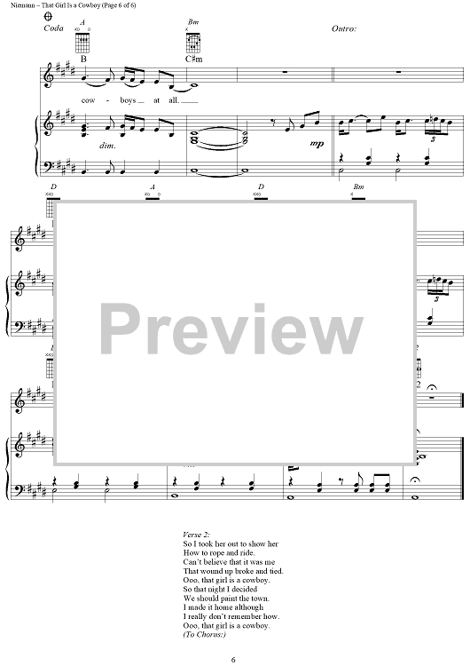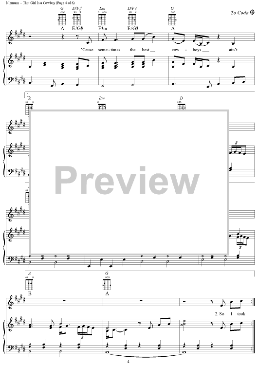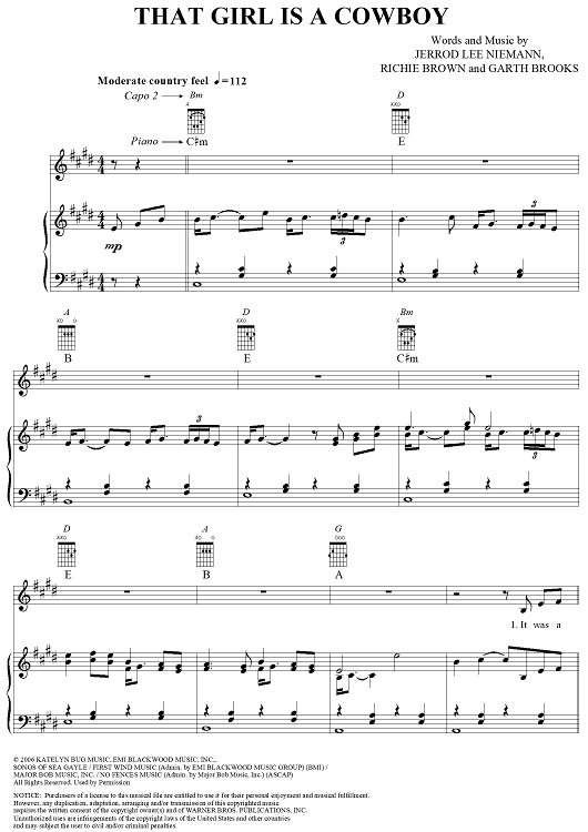 Digital Sheet Music for That Girl is a Cowboy by Garth Brooks, Jerrod Lee Niemann, Richie Brown scored for Piano/Vocal/Chords; id:355013