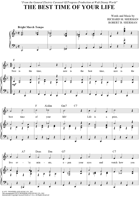 Digital Sheet Music for The Best Time Of Your Life by Richard M. Sherman, Robert B. Sherman, Howard Ashman scored for Piano/Vocal/Chords; id:422789