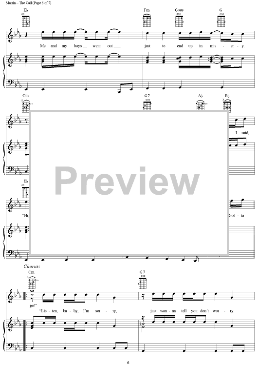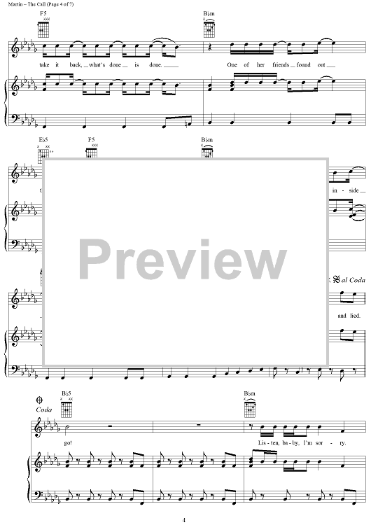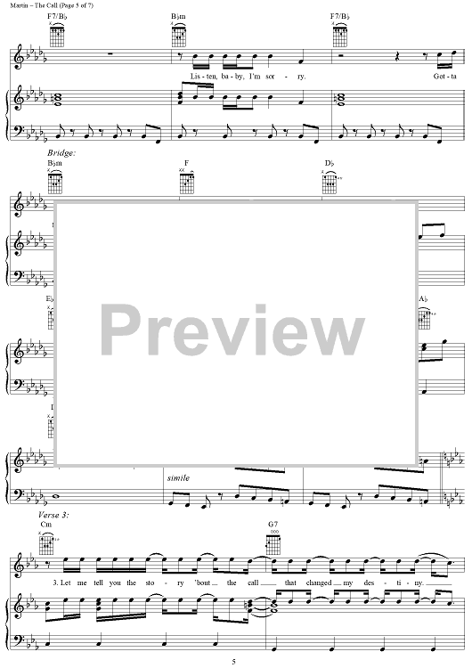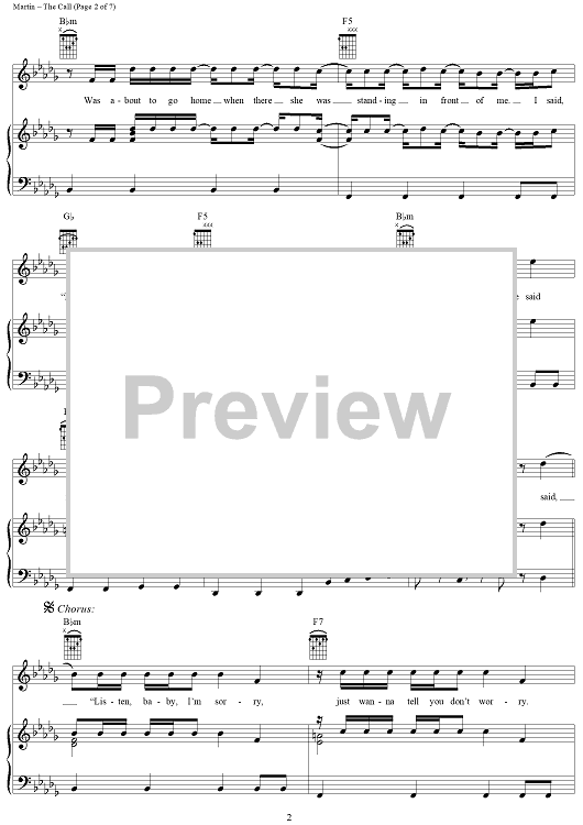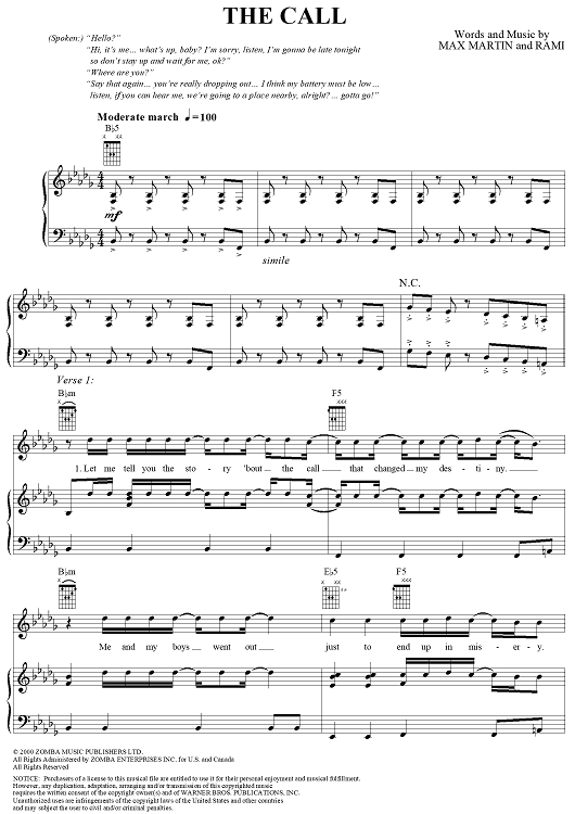 Digital Sheet Music for The Call by Max Martin, Backstreet Boys, Rami Yacoub scored for Piano/Vocal/Chords; id:284206