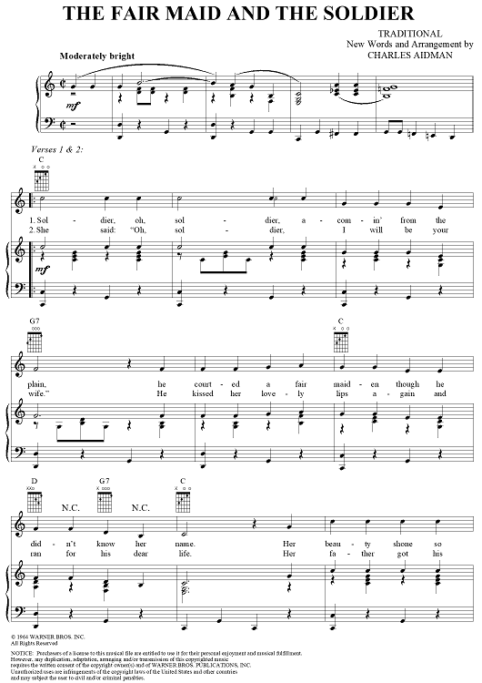 Digital Sheet Music for The Fair Maid and the Soldier by Charles Aidman, Traditional scored for Piano/Vocal/Chords; id:355364
