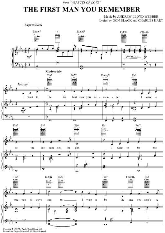 Digital Sheet Music for The First Man You Remember by Don Black, Andrew Lloyd Webber, Charles Hart scored for Piano/Vocal/Chords; id:391243