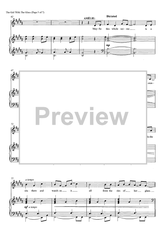 Digital Sheet Music for The Girl With The Glass - from Amélie by Nathan Tysen, Daniel Messé scored for Piano/Vocal/Chords; id:466149