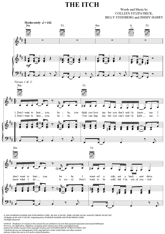 Digital Sheet Music for The Itch by Billy Steinberg, Colleen Fitzpatrick, Vitamin C, Jimmy Harry scored for Piano/Vocal/Chords; id:283130