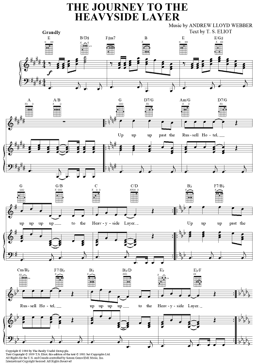 Digital Sheet Music for The Journey To The Heavyside Layer by Andrew Lloyd Webber, T.S. Eliot scored for Piano/Vocal/Chords; id:402931