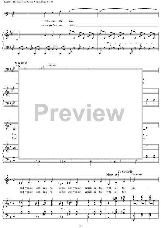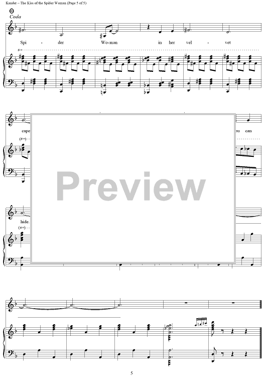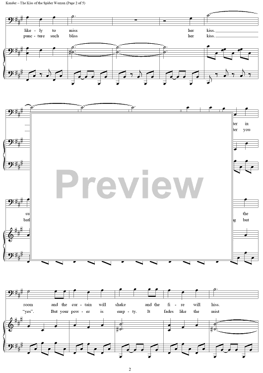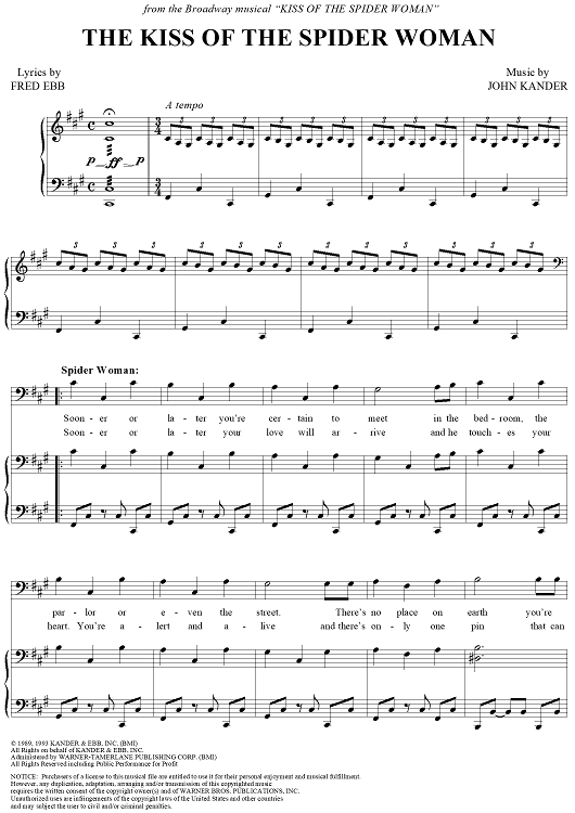 Digital Sheet Music for The Kiss of the Spider Woman by John Kander, Fred Ebb scored for Piano/Vocal; id:116547