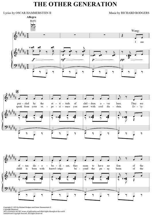 Digital Sheet Music for The Other Generation by Richard Rodgers, Oscar Hammerstein II scored for Piano/Vocal/Chords; id:367116