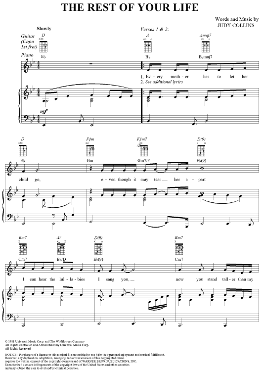 "The Rest of Your Life" Sheet Music by Judy Collins