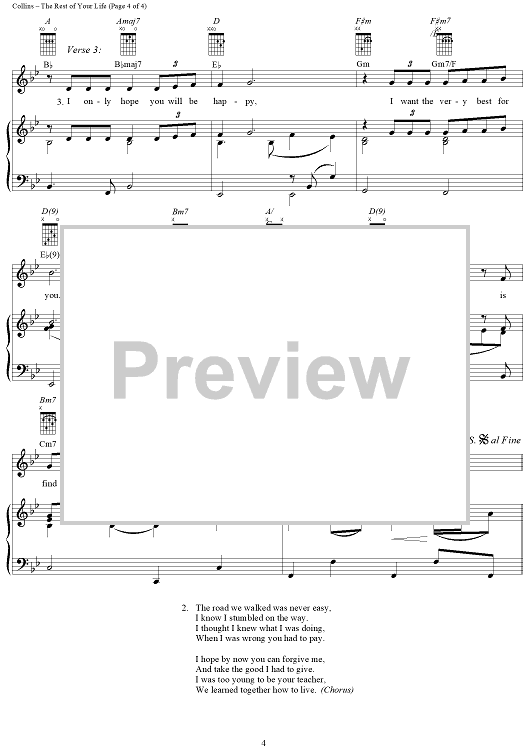 Digital Sheet Music for The Rest of Your Life by Judy Collins scored for Piano/Vocal/Chords; id:286003