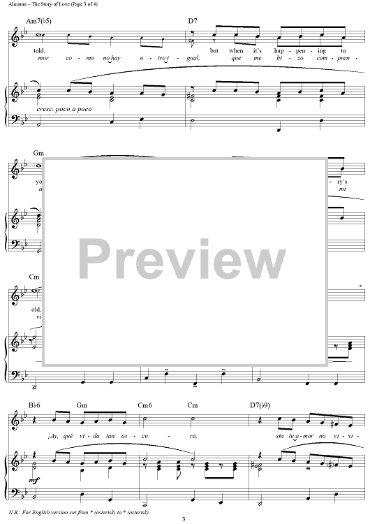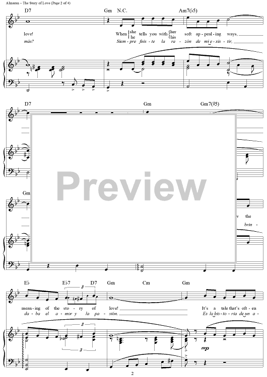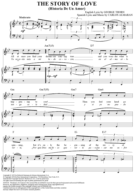 Digital Sheet Music for The Story of Love (Historia de Un Amor) by Carlos Almaran scored for Piano/Vocal/Chords; id:319264