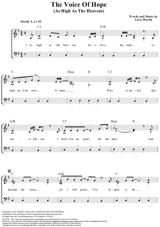 Digital Sheet Music for The Voice of Hope (As High As The Heavens) by Lara Martin scored for Piano/Vocal/Chords; id:361795
