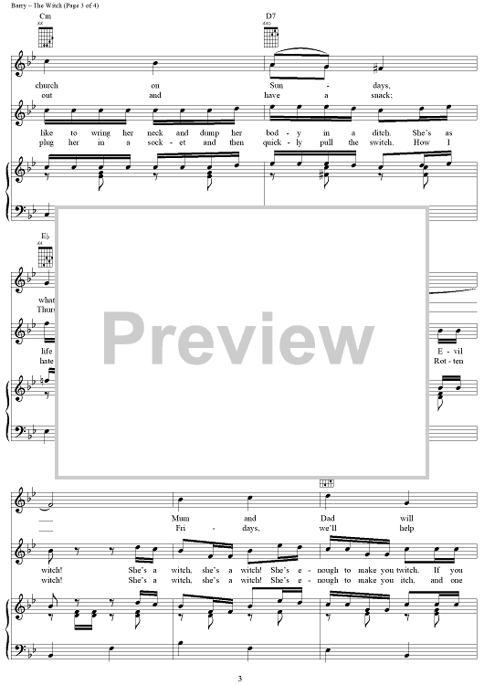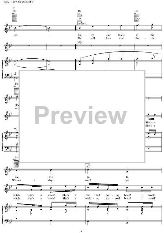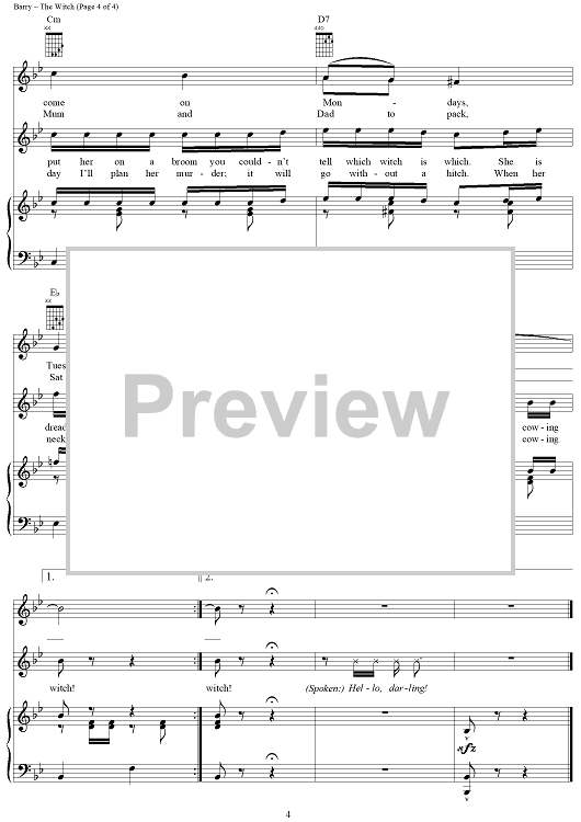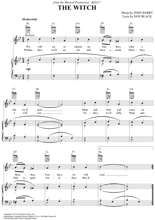 Digital Sheet Music for The Witch by John Barry, Don Black scored for Piano/Vocal/Chords; id:366159