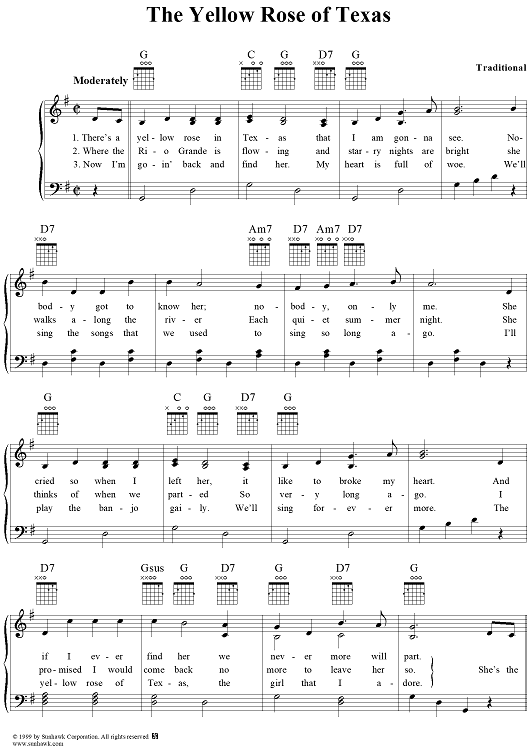 Digital Sheet Music for The Yellow Rose of Texas by Traditional scored for Piano/Vocal/Chords; id:114187