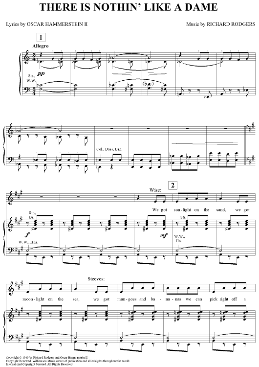 Digital Sheet Music for There Is Nothin' Like a Dame by Richard Rodgers, Oscar Hammerstein II scored for Piano/Vocal; id:366327