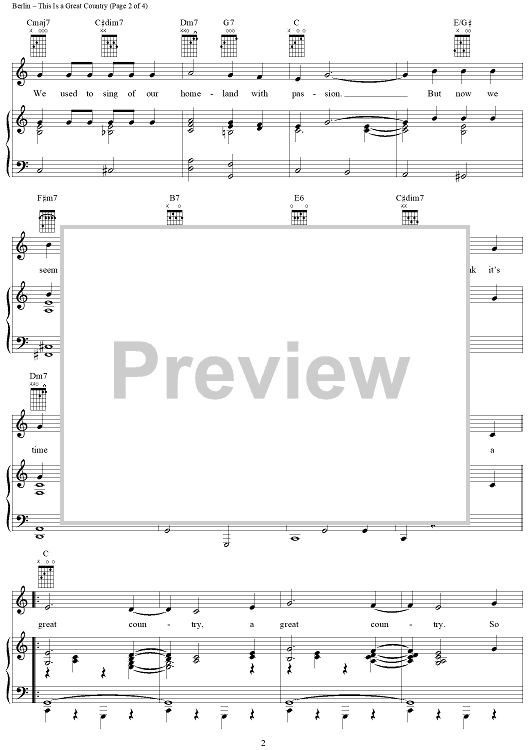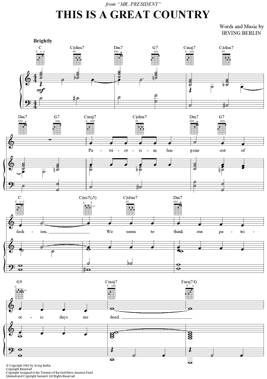Digital Sheet Music for This Is a Great Country by Irving Berlin scored for Piano/Vocal/Chords; id:402980