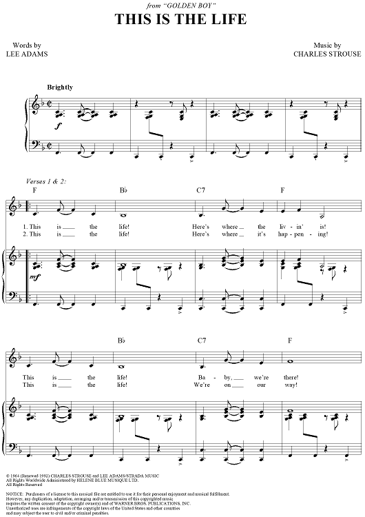 Digital Sheet Music for This Is the Life by Charles Strouse, Lee Adams scored for Piano/Vocal/Chords; id:259274