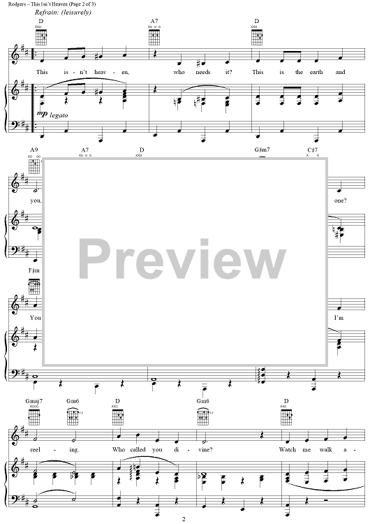 Digital Sheet Music for This Isn't Heaven by Richard Rodgers scored for Piano/Vocal/Chords; id:367104