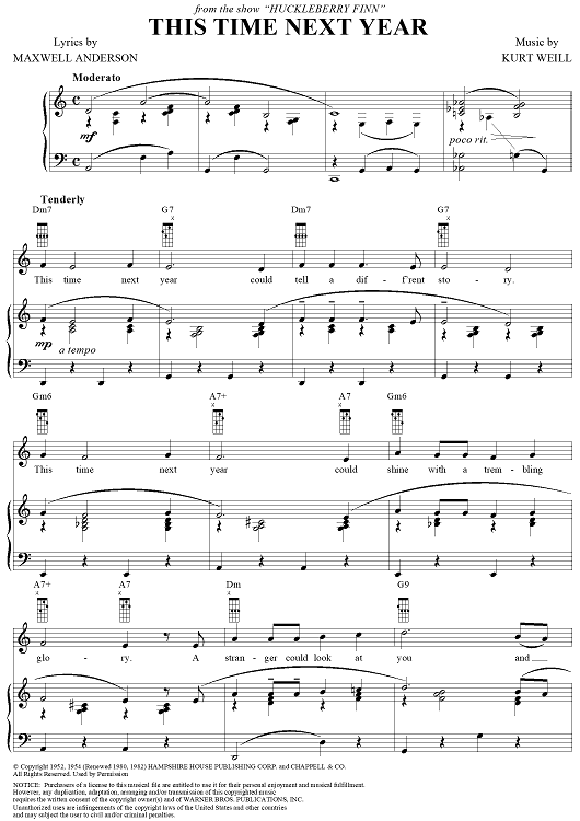 Digital Sheet Music for This Time Next Year by Maxwell Anderson, Kurt Weill scored for Piano/Vocal; id:263587