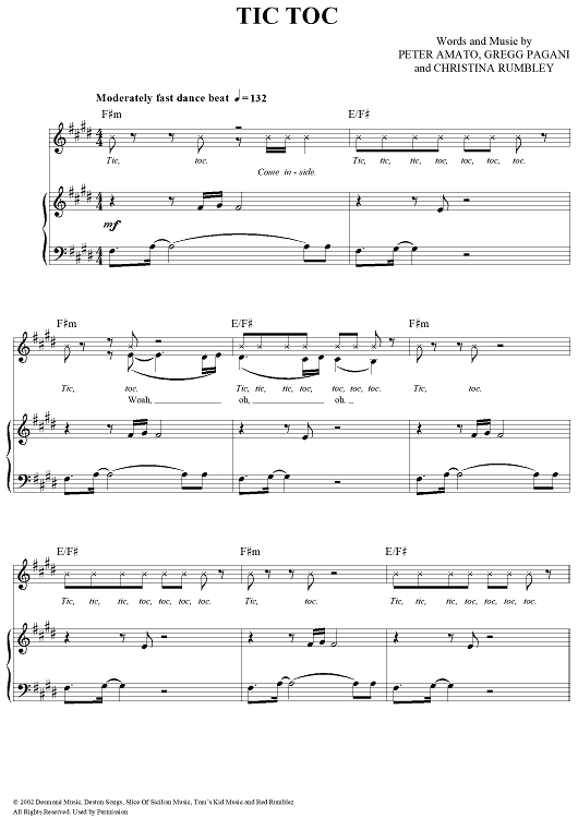 Digital Sheet Music for Tic Toc by LeAnn Rimes, Gregg Pagani, Peter Amato, Christina Rumbley scored for Piano/Vocal/Chords; id:294104