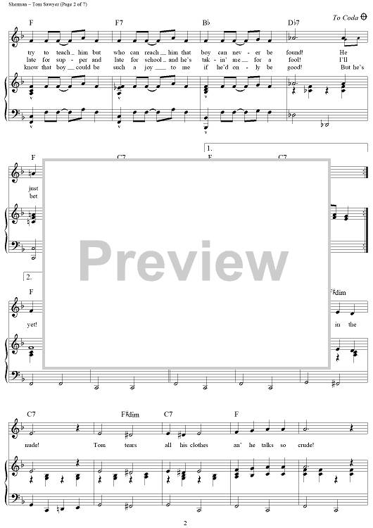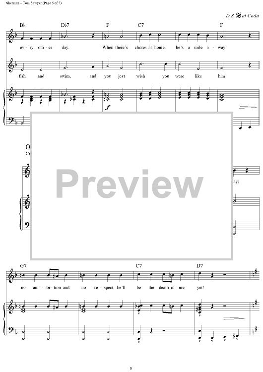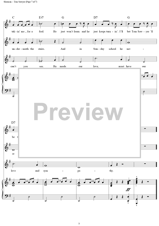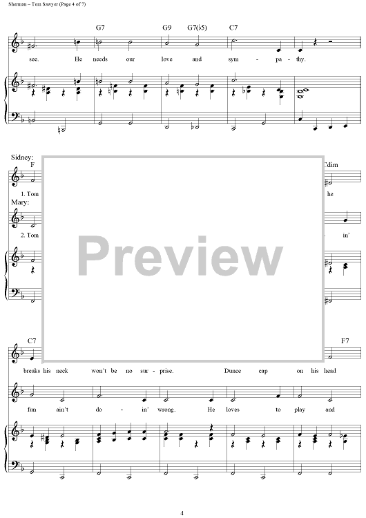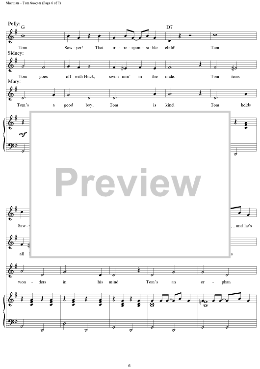 Digital Sheet Music for Tom Sawyer by Richard M. Sherman, Robert B. Sherman scored for Piano/Vocal/Chords; id:366126