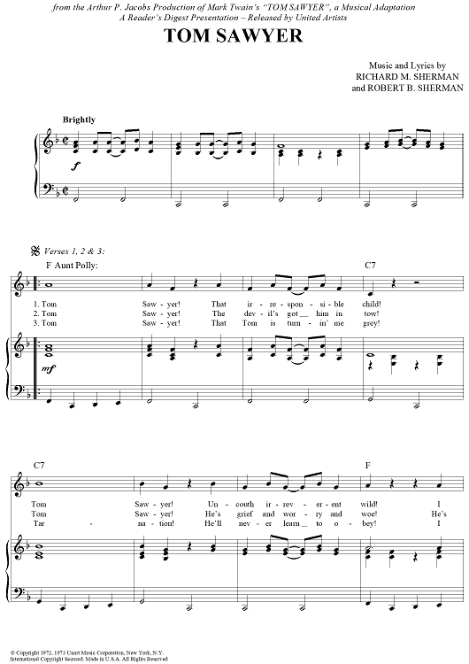 "Tom Sawyer" Sheet Music by Richard M. Sherman