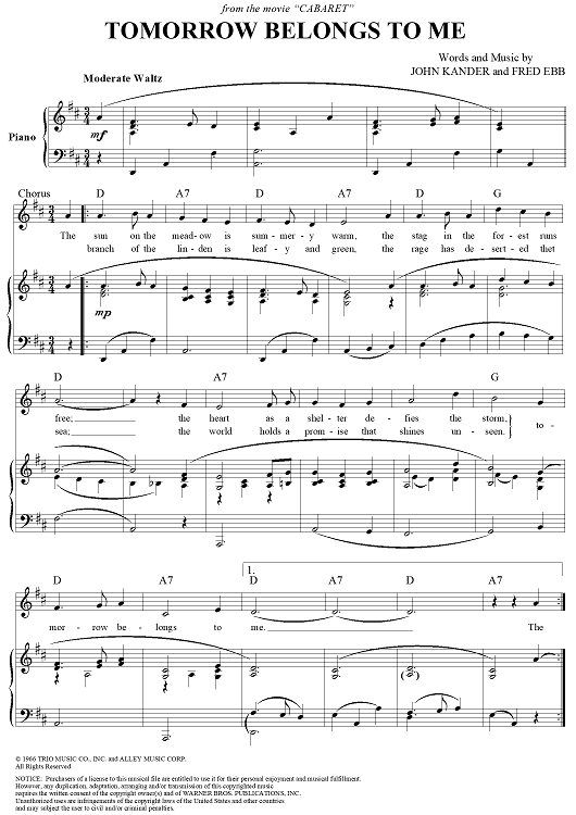 Digital Sheet Music for Tomorrow Belongs to Me by John Kander, Joel Grey, Fred Ebb scored for Piano/Vocal/Chords; id:116545