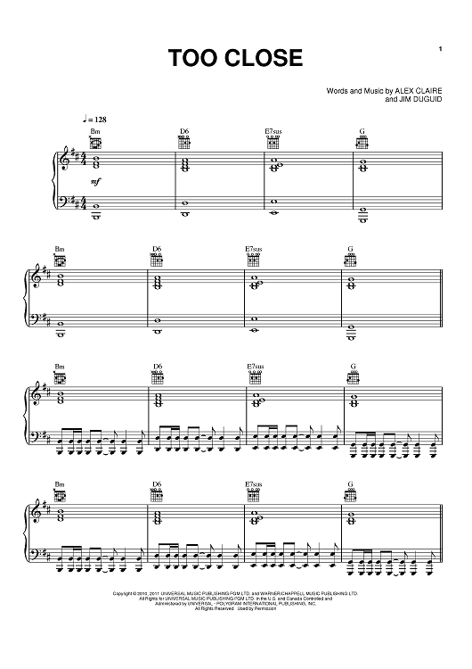 Digital Sheet Music for Too Close by Jim Duguid, Alex Clare scored for Piano/Vocal/Chords; id:433042