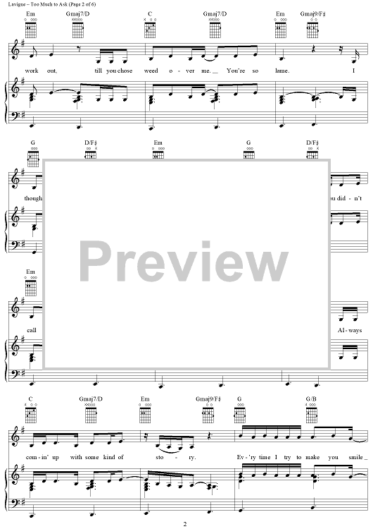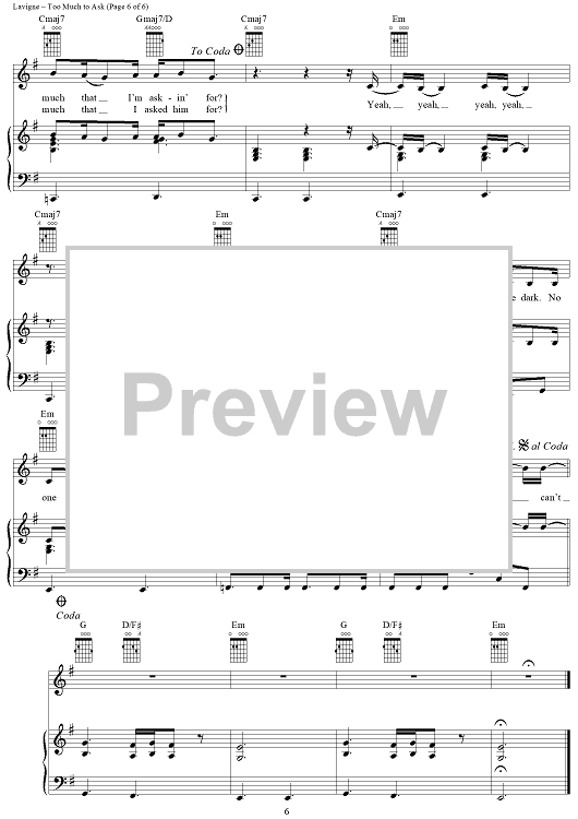 "Too Much to Ask" Sheet Music by Avril Lavigne