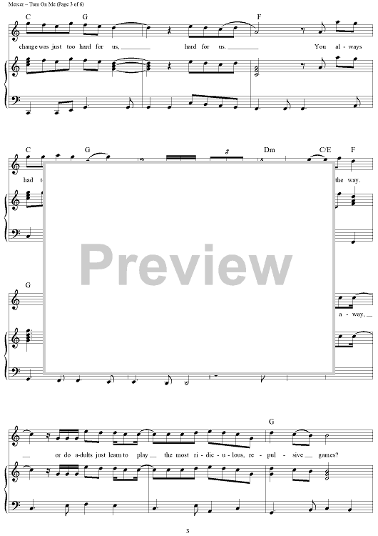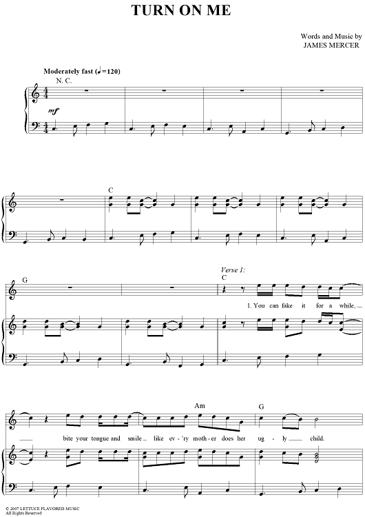 Digital Sheet Music for Turn On Me by James Mercer, The Shins scored for Piano/Vocal/Chords; id:418724