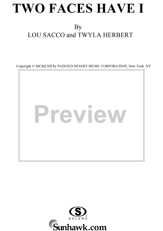 Digital Sheet Music for Two Faces Have I by Lou Sacco, Twyla Herbert, Lou Christie scored for Piano/Vocal/Chords; id:125725